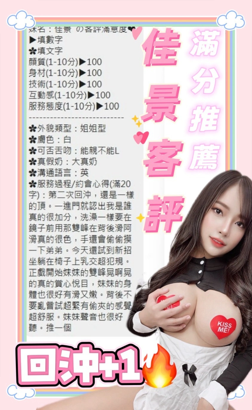 可配合 :奶砲,按摩,69,共浴,泰國浴,可親嘴,無套吹,品鮑,舔蛋,奶推,屁推,冰火,顏射,絲襪(自備免付),玩具(按摩棒),玩具(跳蛋),情趣用品(客自備),快餐,2S