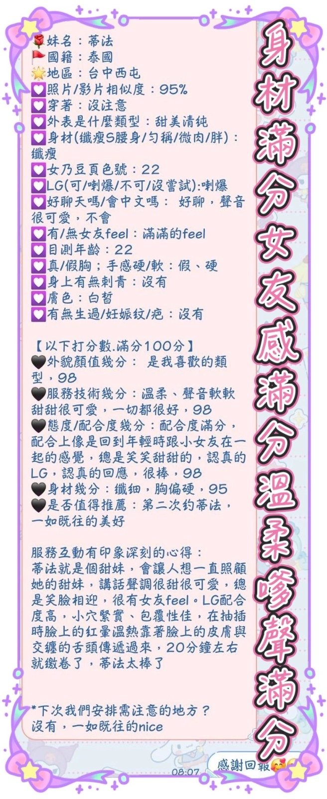 可配合 :奶砲,按摩,69,共浴,殘廢澡,LG(舌吻)依氣氛衛生而定,可親嘴,無套吹,品鮑,舔蛋,輕功,變裝(自備免付),絲襪(自備免付),快餐,2S
