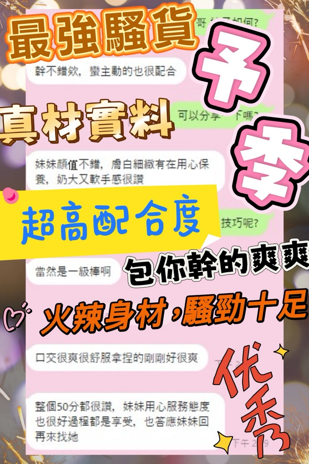 可配合 :奶砲,按摩,69,共浴,殘廢澡,LG(舌吻)依氣氛衛生而定,可親嘴,無套吹,足交,品鮑,舔蛋,變裝(自備免付),絲襪(自備免付),自慰秀,攝影,中文溝通,快餐,2S,包夜