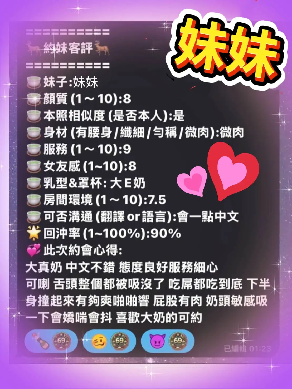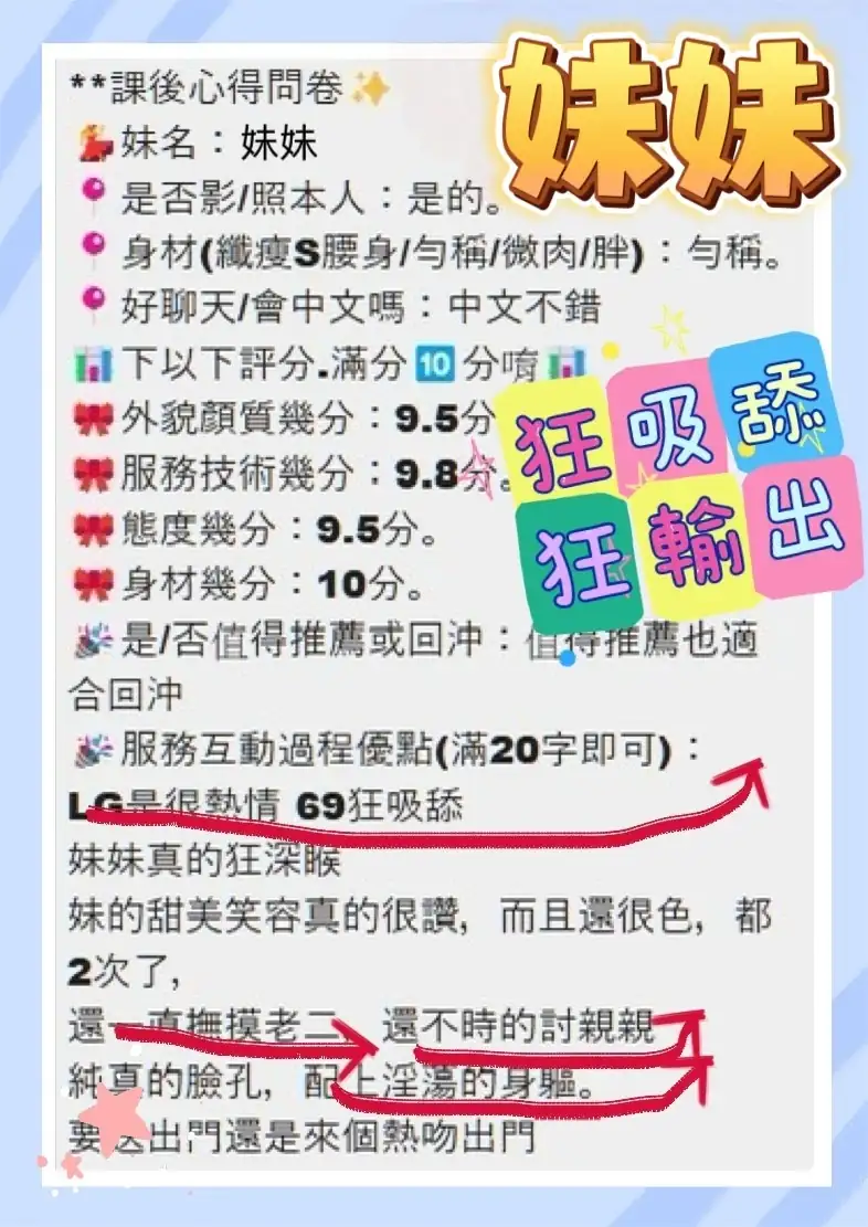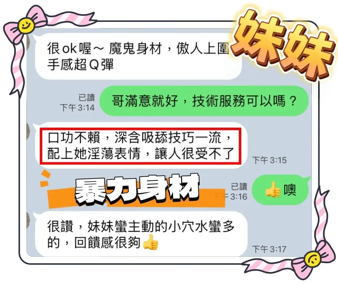 4️⃣見面後確認妹妹滿意後 將現金交給妹妹,即可開始享受服務。