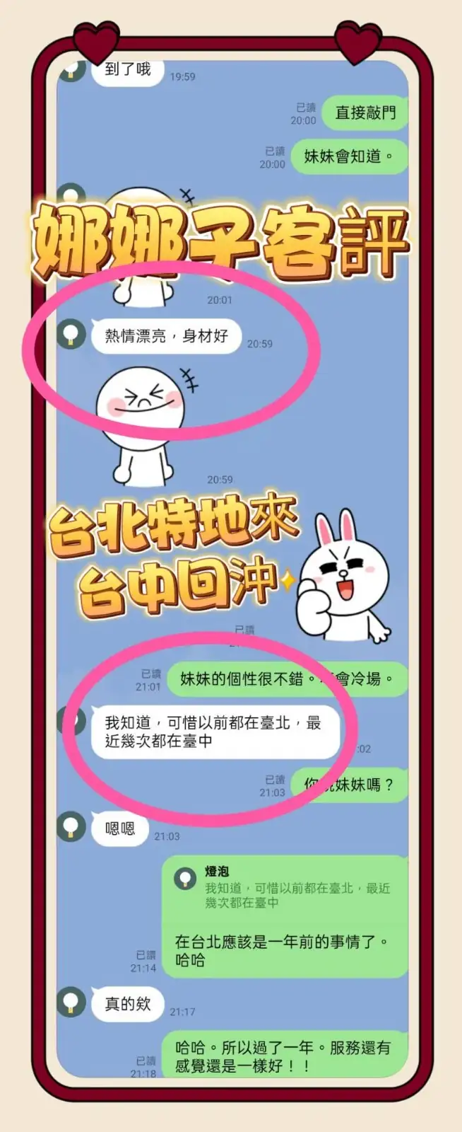 4️⃣見面後確認妹妹滿意後 將現金交給妹妹,即可開始享受服務。