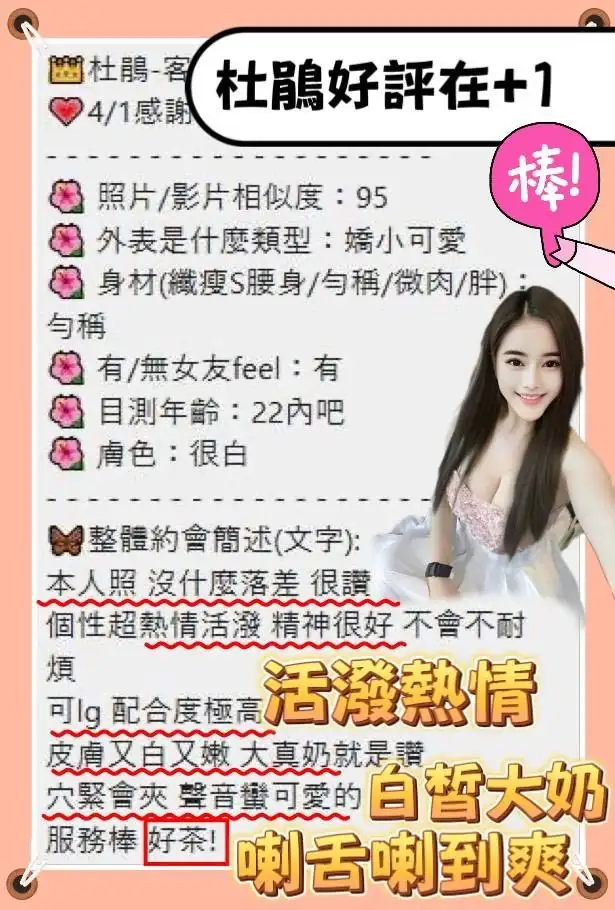 4️⃣見面後確認妹妹滿意後 將現金交給妹妹,即可開始享受服務。