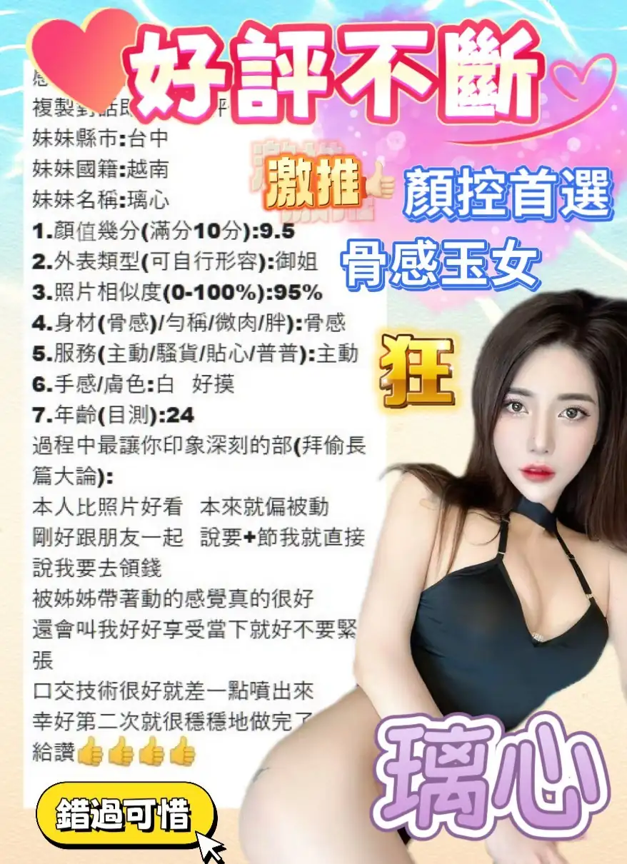 答:不可以哦,因為妹妹都是兼職的,在我們這般約她我們能保證在第一時間保護雙方的安全。如果加聯絡方式自己約,出現任何經濟糾紛與我們無關(有真實案例),請重視!!!