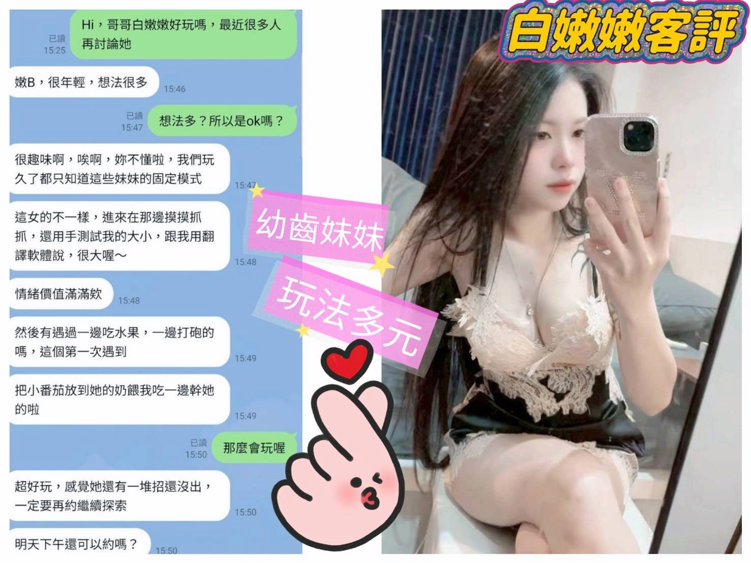 4️⃣見面後確認妹妹滿意後 將現金交給妹妹,即可開始享受服務。