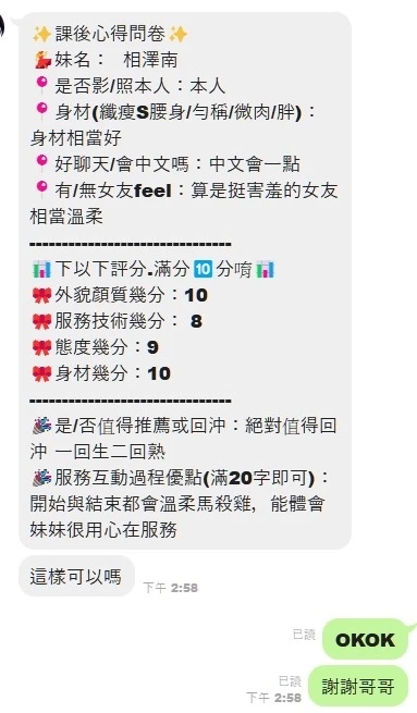 4️⃣見面後確認妹妹滿意後 將現金交給妹妹,即可開始享受服務。