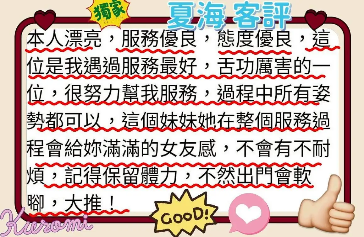 4️⃣見面後確認妹妹滿意後 將現金交給妹妹,即可開始享受服務。