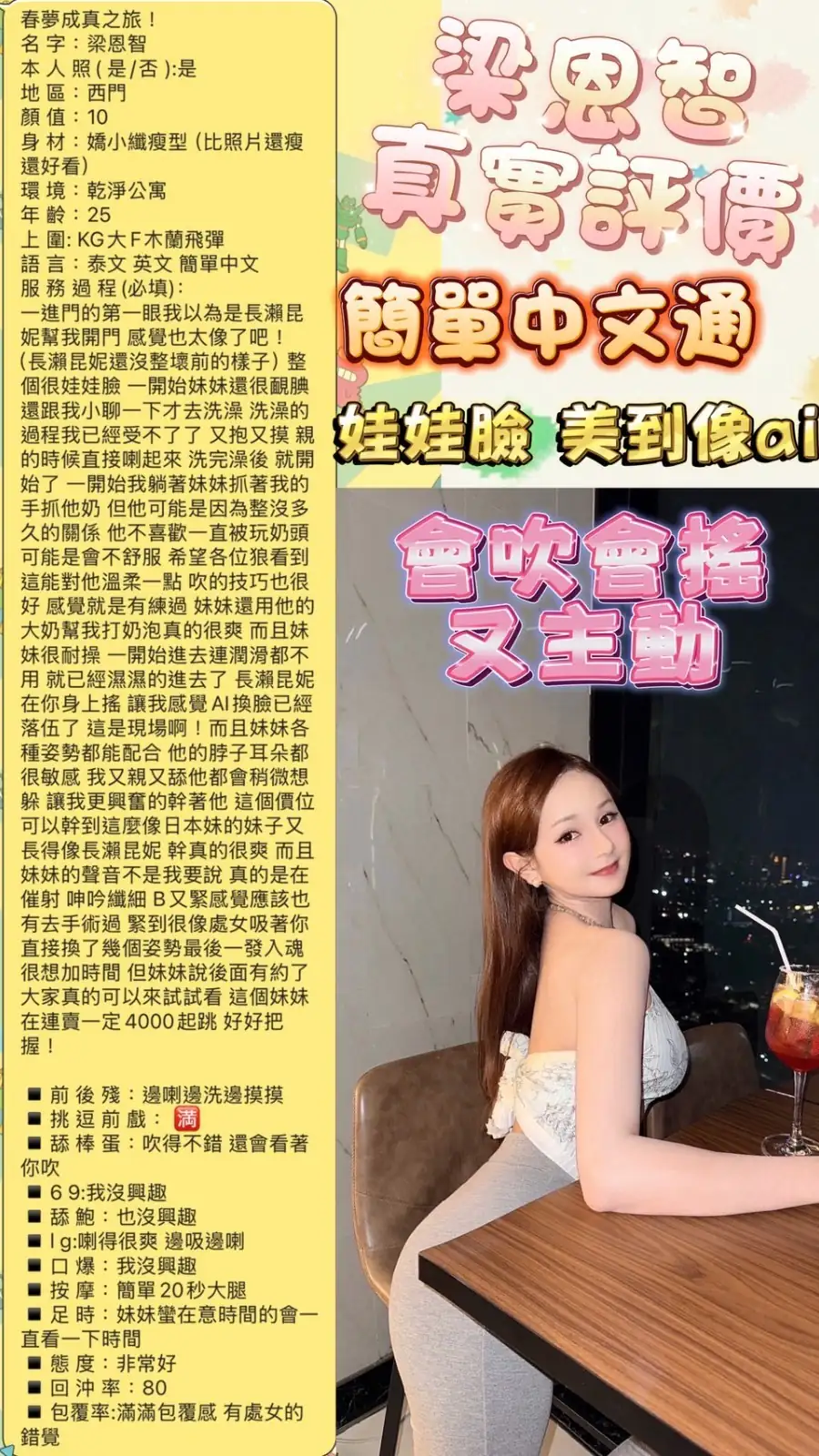4️⃣見面後確認妹妹滿意後 將現金交給妹妹,即可開始享受服務。