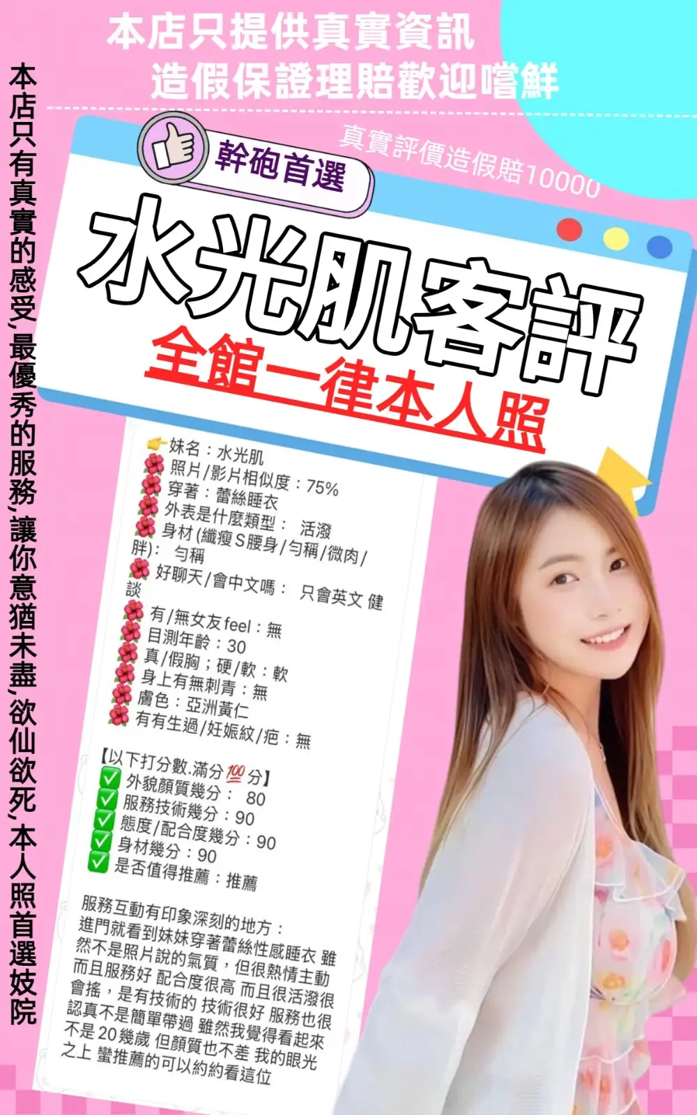 答:不可以哦,因為妹妹都是兼職的,在我們這般約她我們能保證在第一時間保護雙方的安全。如果加聯絡方式自己約,出現任何經濟糾紛與我們無關(有真實案例),請重視!!!