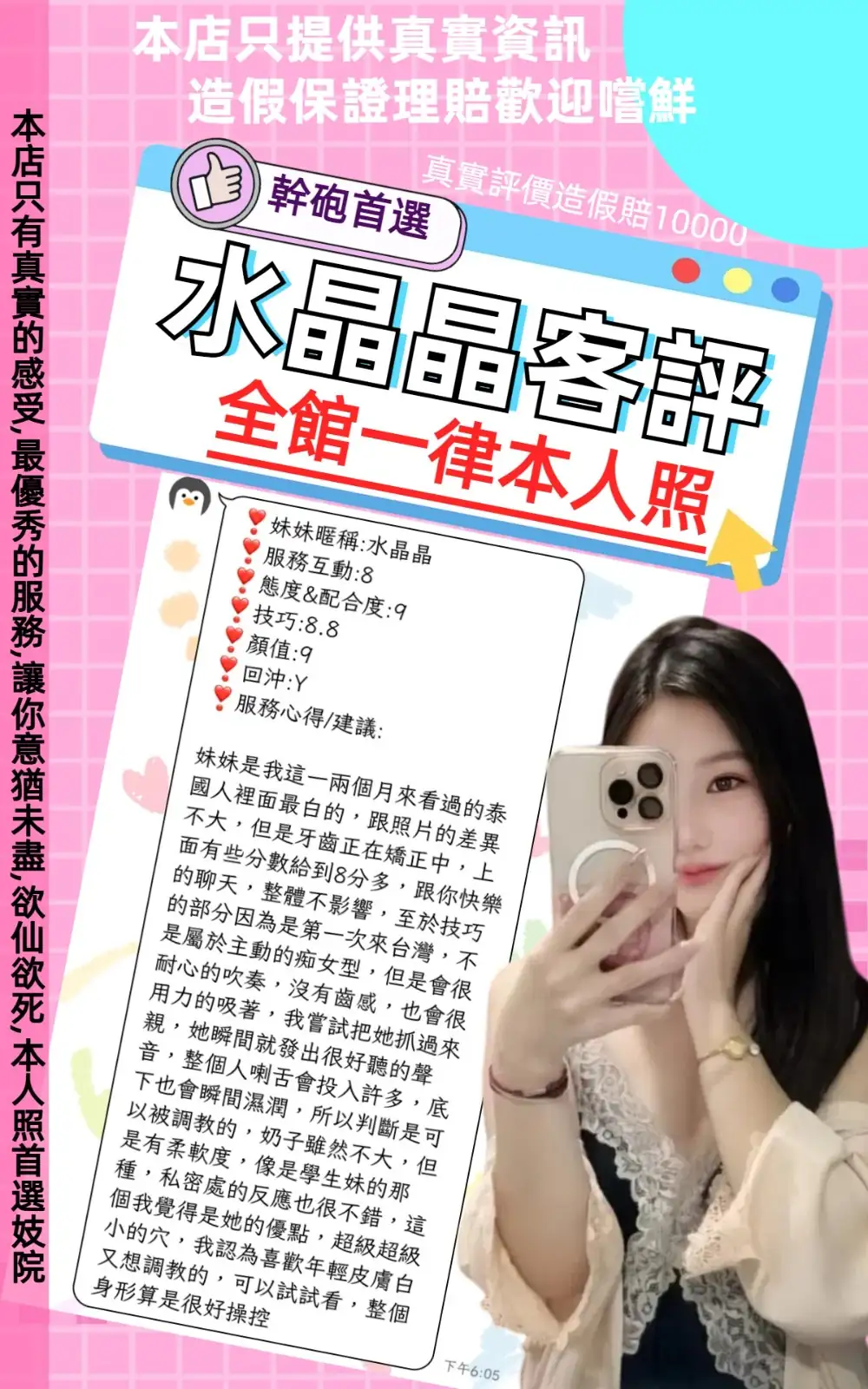 4️⃣見面後確認妹妹滿意後 將現金交給妹妹,即可開始享受服務。