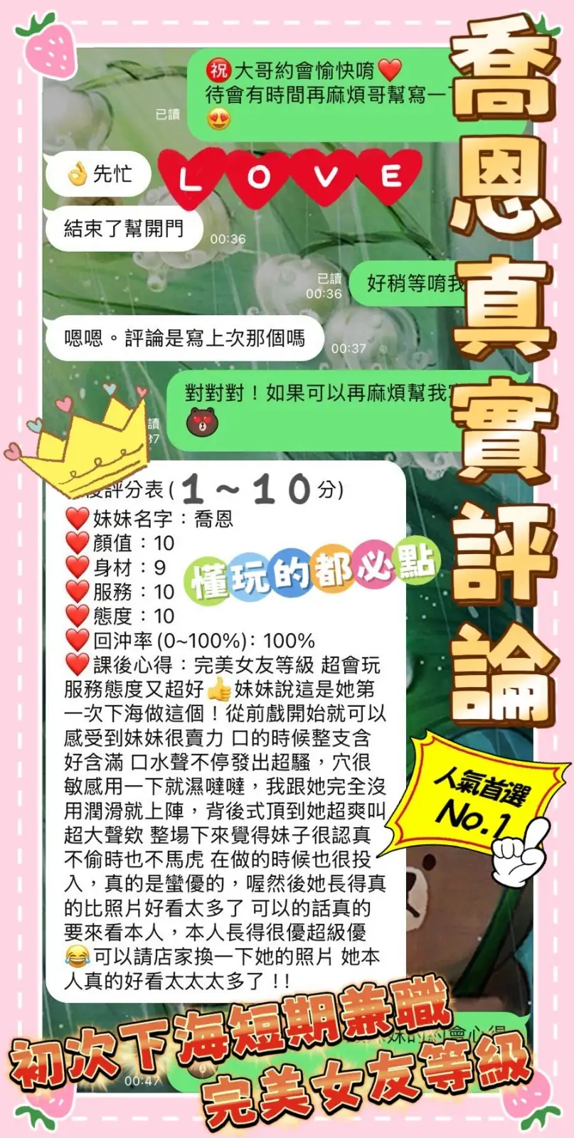 4️⃣見面後確認妹妹滿意後 將現金交給妹妹,即可開始享受服務。