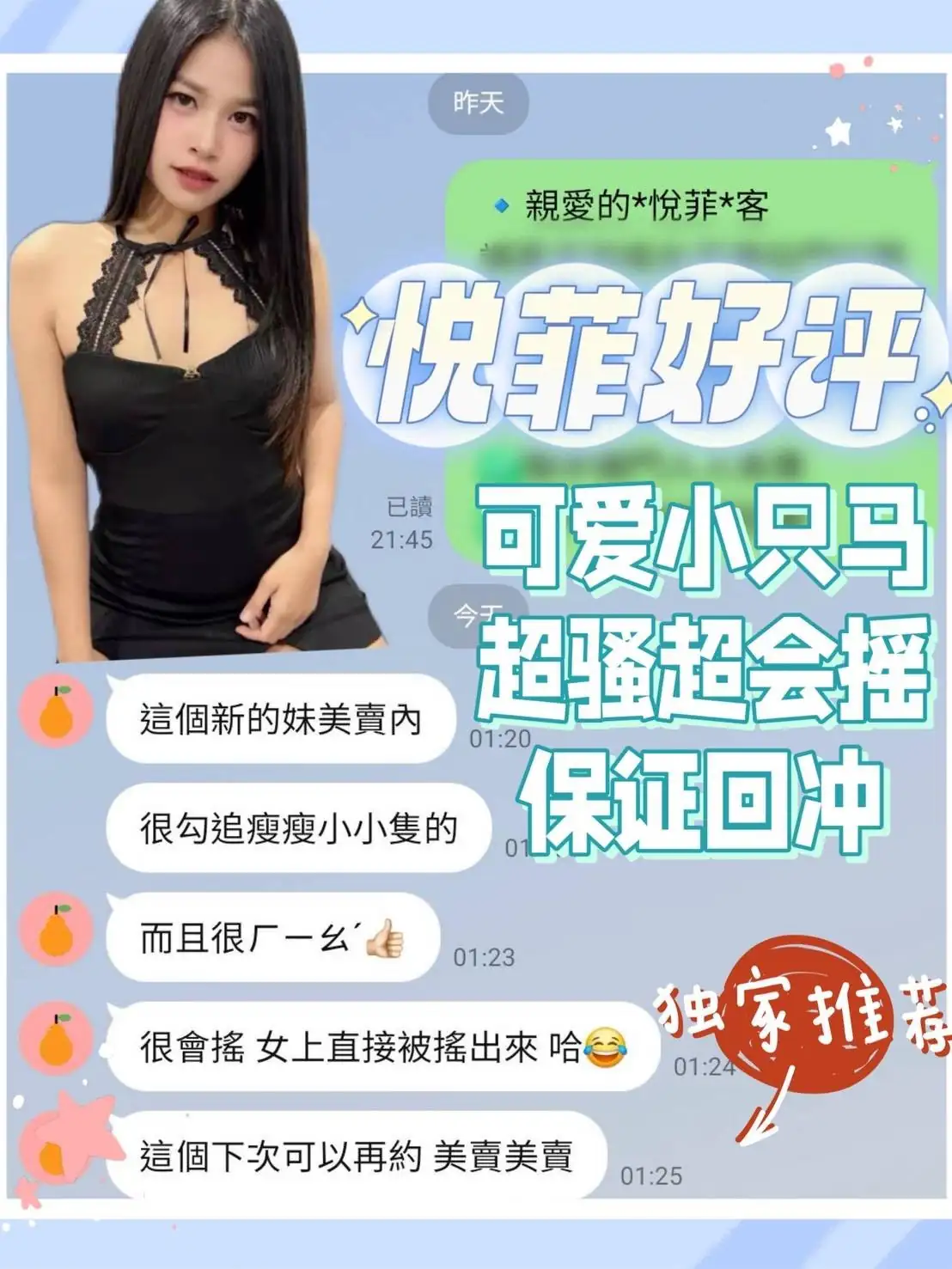 答:不可以哦,因為妹妹都是兼職的,在我們這般約她我們能保證在第一時間保護雙方的安全。如果加聯絡方式自己約,出現任何經濟糾紛與我們無關(有真實案例),請重視!!!