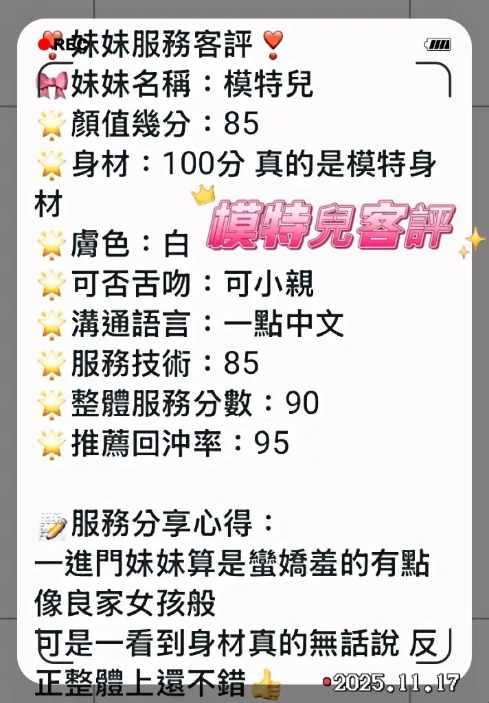 4️⃣見面後確認妹妹滿意後 將現金交給妹妹,即可開始享受服務。