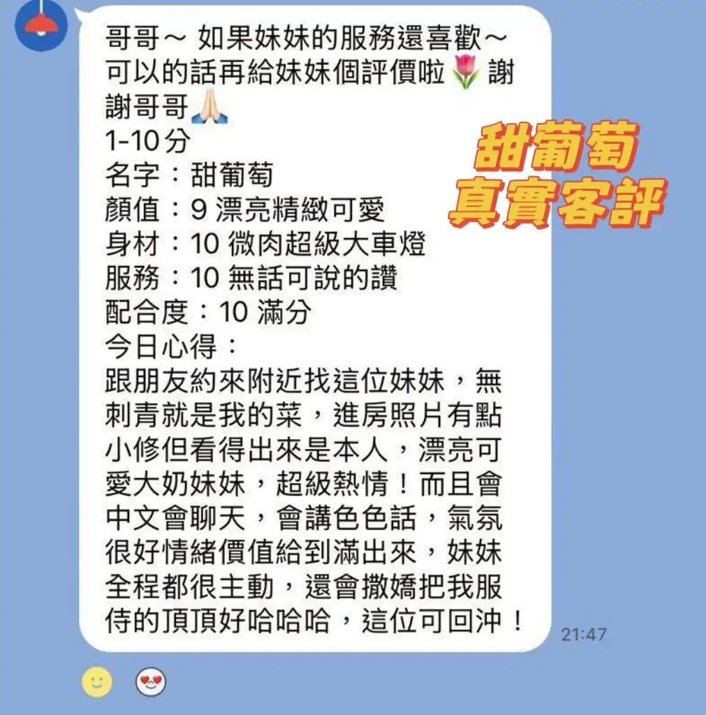 4️⃣見面後確認妹妹滿意後 將現金交給妹妹,即可開始享受服務。