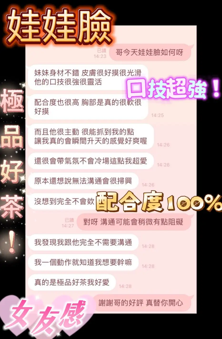 4️⃣見面後確認妹妹滿意後 將現金交給妹妹,即可開始享受服務。