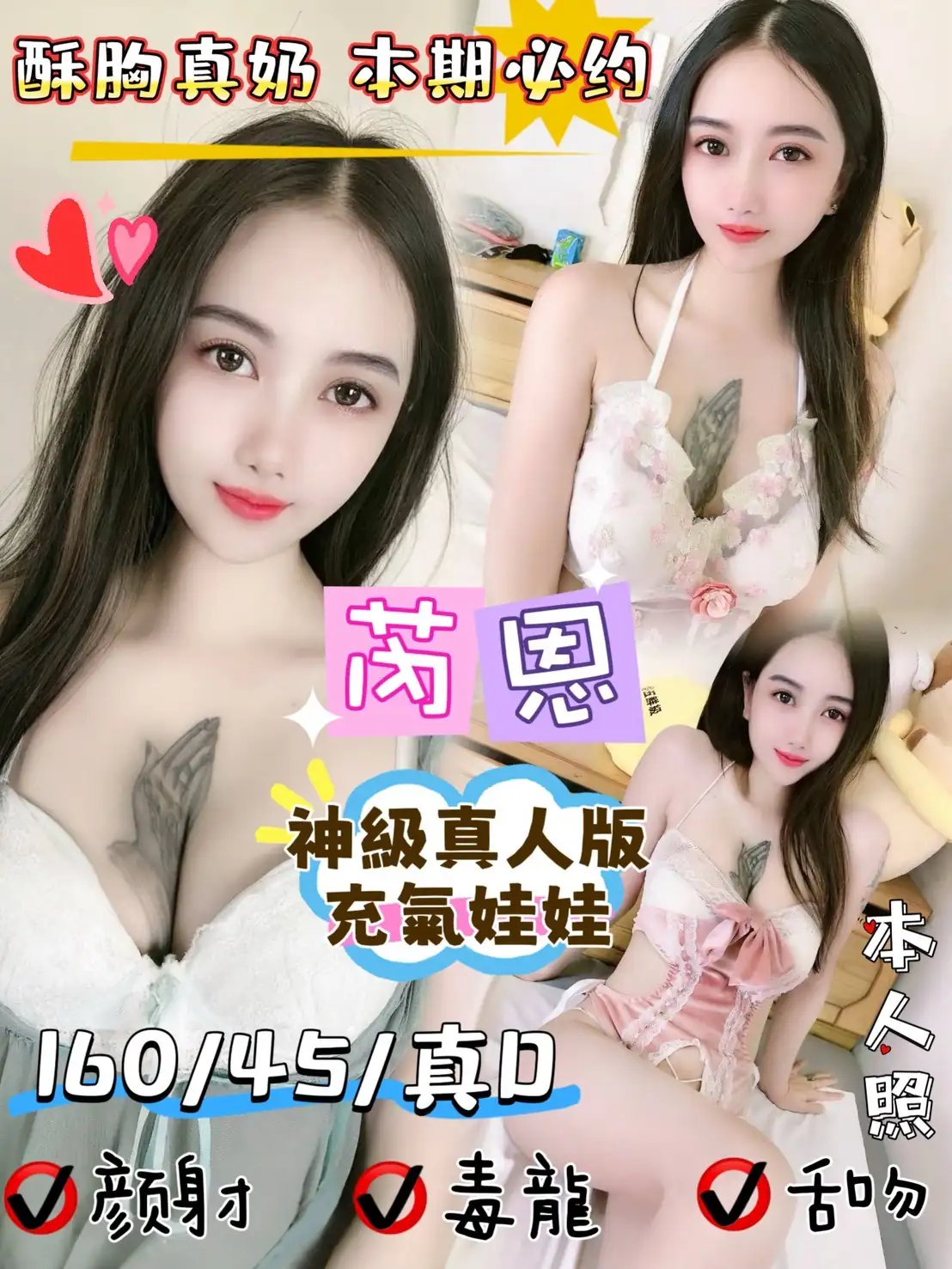 可配合 : 奶砲,毒龍,按摩,69,共浴,無套吹,品鮑,舔蛋,屁推,顏射,絲襪(自備免付),英文溝通,快餐,2S,包夜