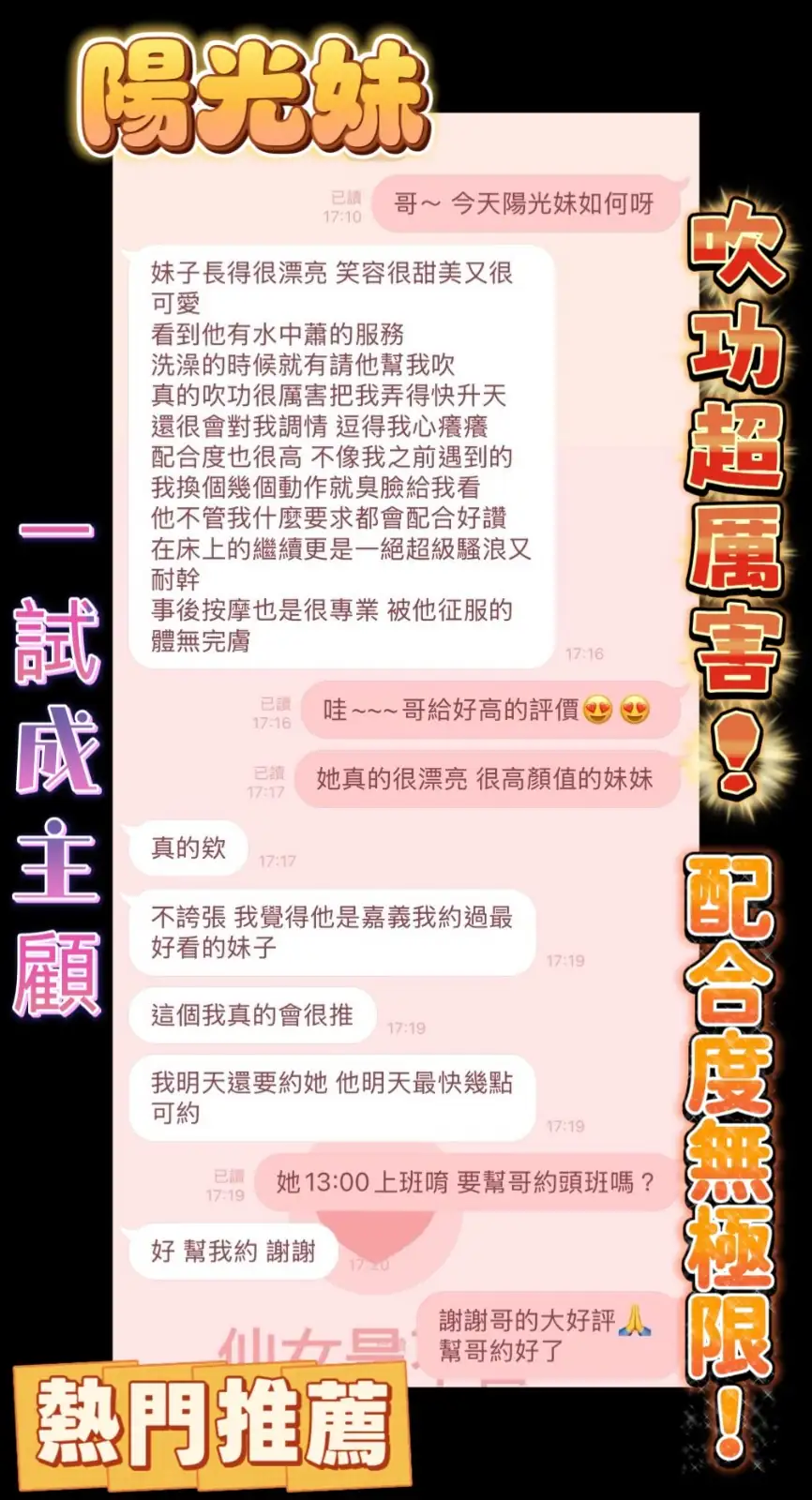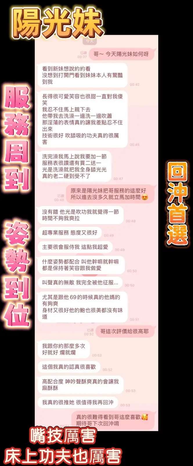 4️⃣見面後確認妹妹滿意後 將現金交給妹妹,即可開始享受服務。