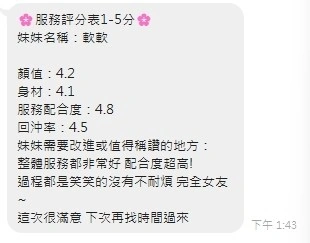 優惠專案 : 20分,2節3S,買3送1,包夜買5送3(5S)