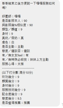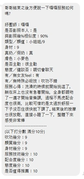 可配合 :奶砲,按摩,69,殘廢澡,LG(舌吻)依氣氛衛生而定,可親嘴,無套吹,品鮑,舔蛋,奶推,屁推,變裝(自備免付),絲襪(自備免付),自慰秀,攝影,快餐,2S