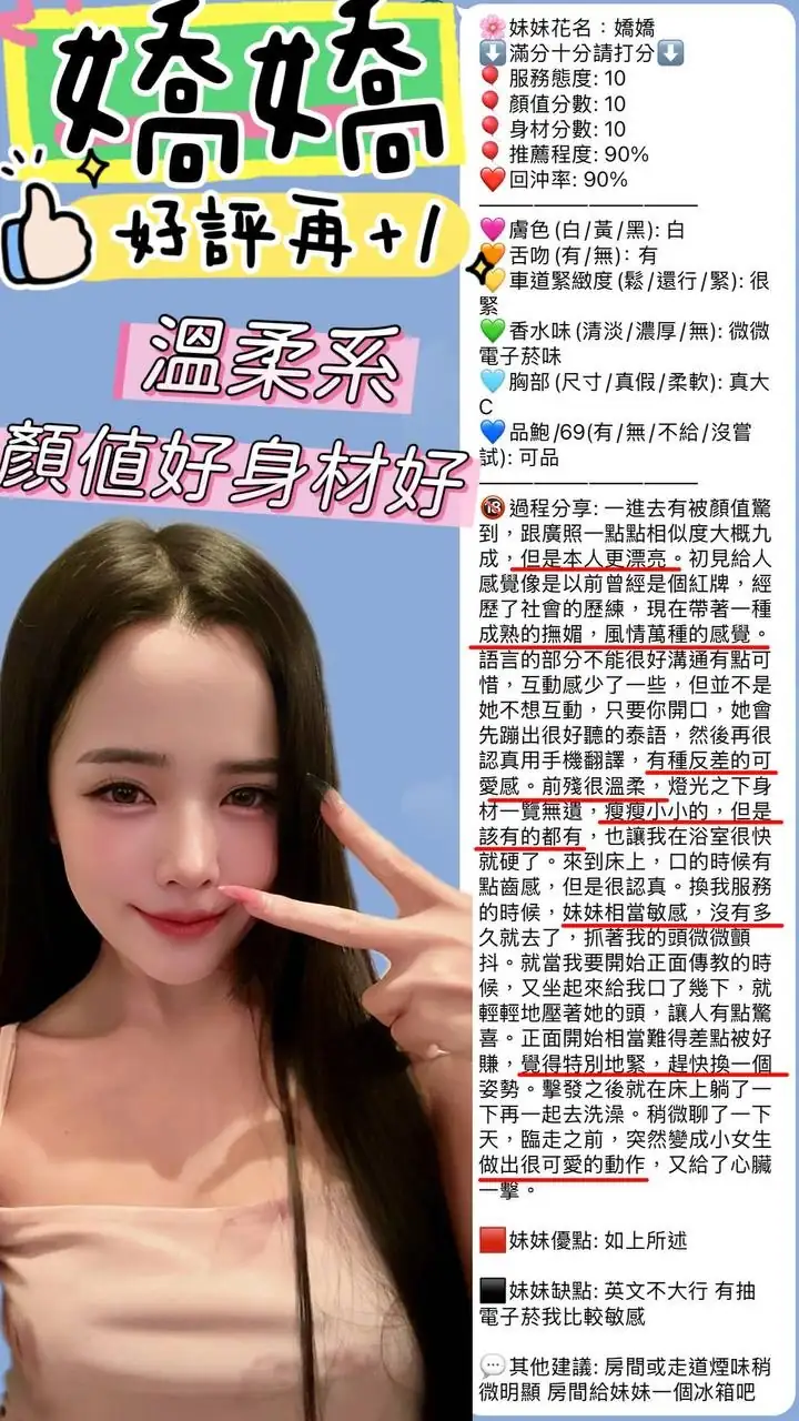 4️⃣見面後確認妹妹滿意後 將現金交給妹妹,即可開始享受服務。
