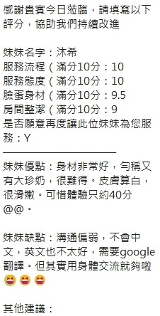 不接受 : 入珠,酒客,毒品,白 人,黑人,偷拍,皮膚異常者,性癖好特殊者