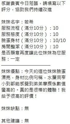 4️⃣見面後確認妹妹滿意後 將現金交給妹妹,即可開始享受服務。