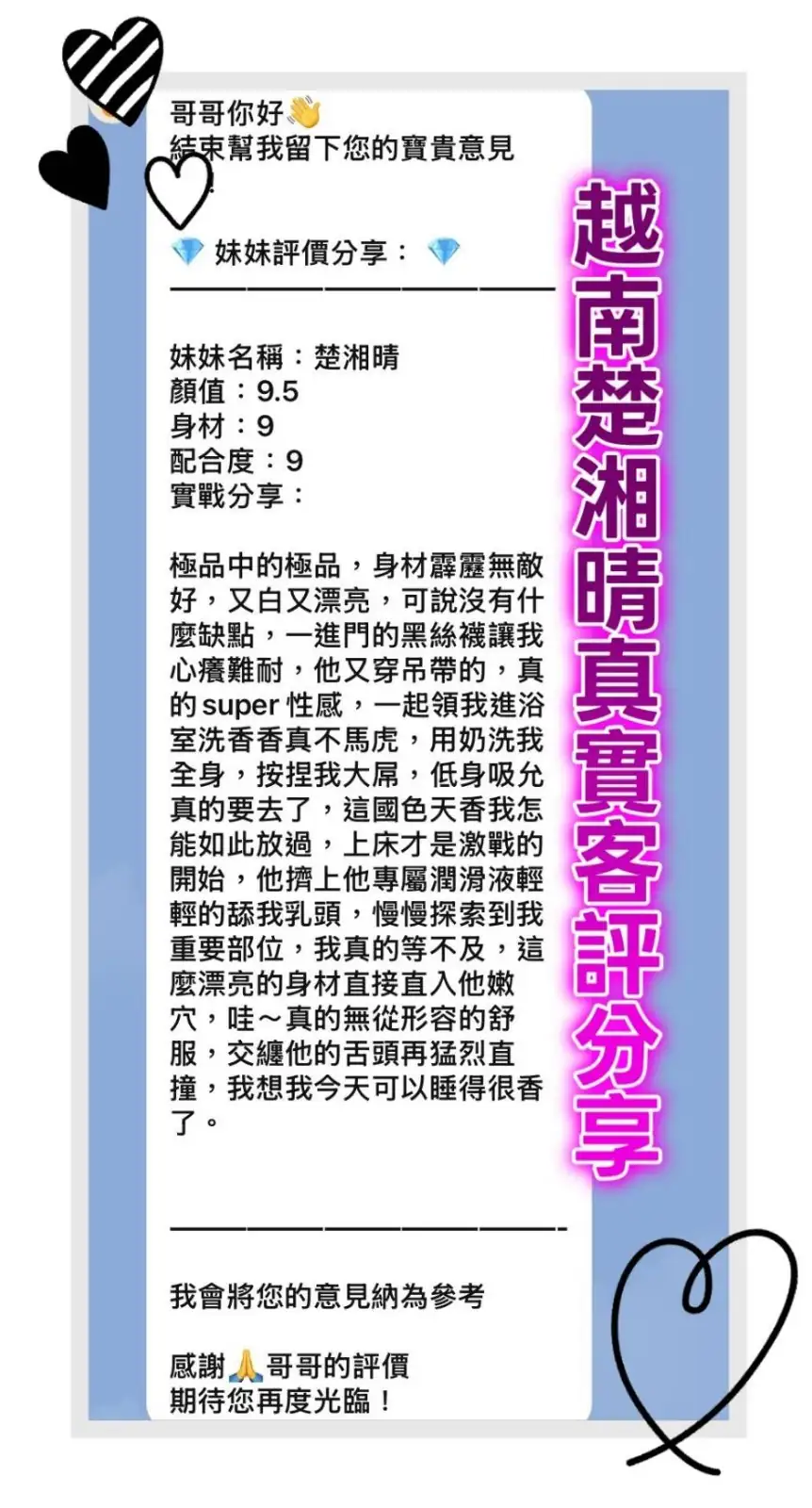 4️⃣見面後確認妹妹滿意後 將現金交給妹妹,即可開始享受服務。
