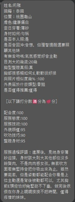 可配合 :奶砲,69,殘廢澡,LG(舌吻)依氣氛衛生而定,可親嘴,無套吹,足交,品鮑,舔蛋,奶推,屁推,浴中蕭,深喉嚨,快餐,2S