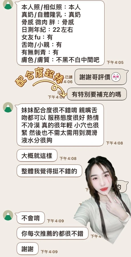 4️⃣見面後確認妹妹滿意後 將現金交給妹妹,即可開始享受服務。