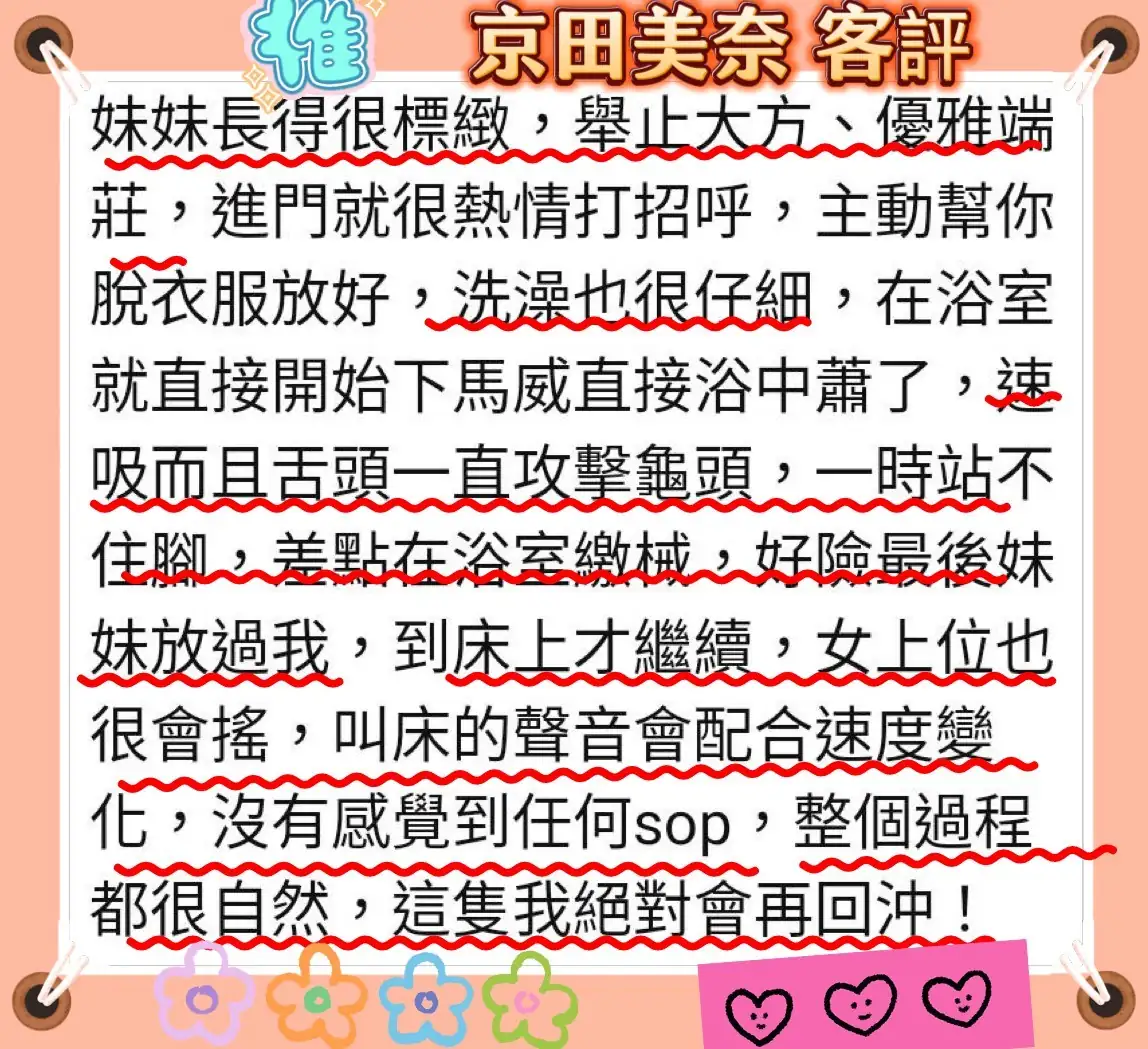 4️⃣見面後確認妹妹滿意後 將現金交給妹妹,即可開始享受服務。