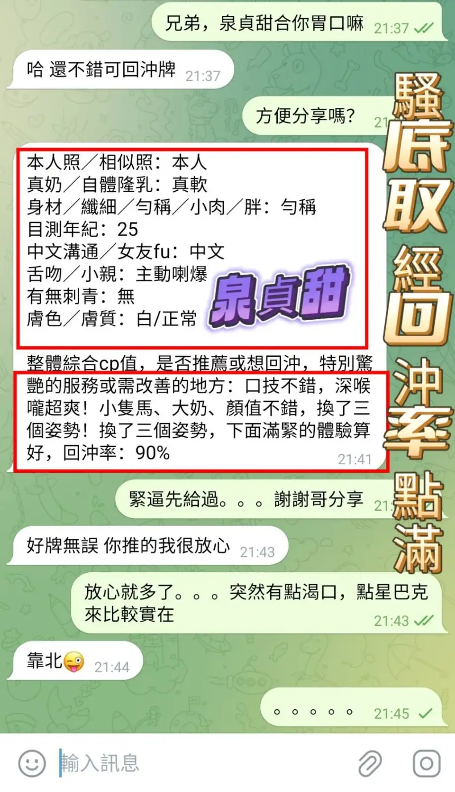 4️⃣見面後確認妹妹滿意後 將現金交給妹妹,即可開始享受服務。