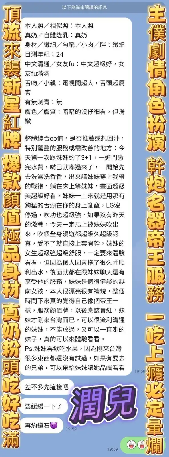 4️⃣見面後確認妹妹滿意後 將現金交給妹妹,即可開始享受服務。