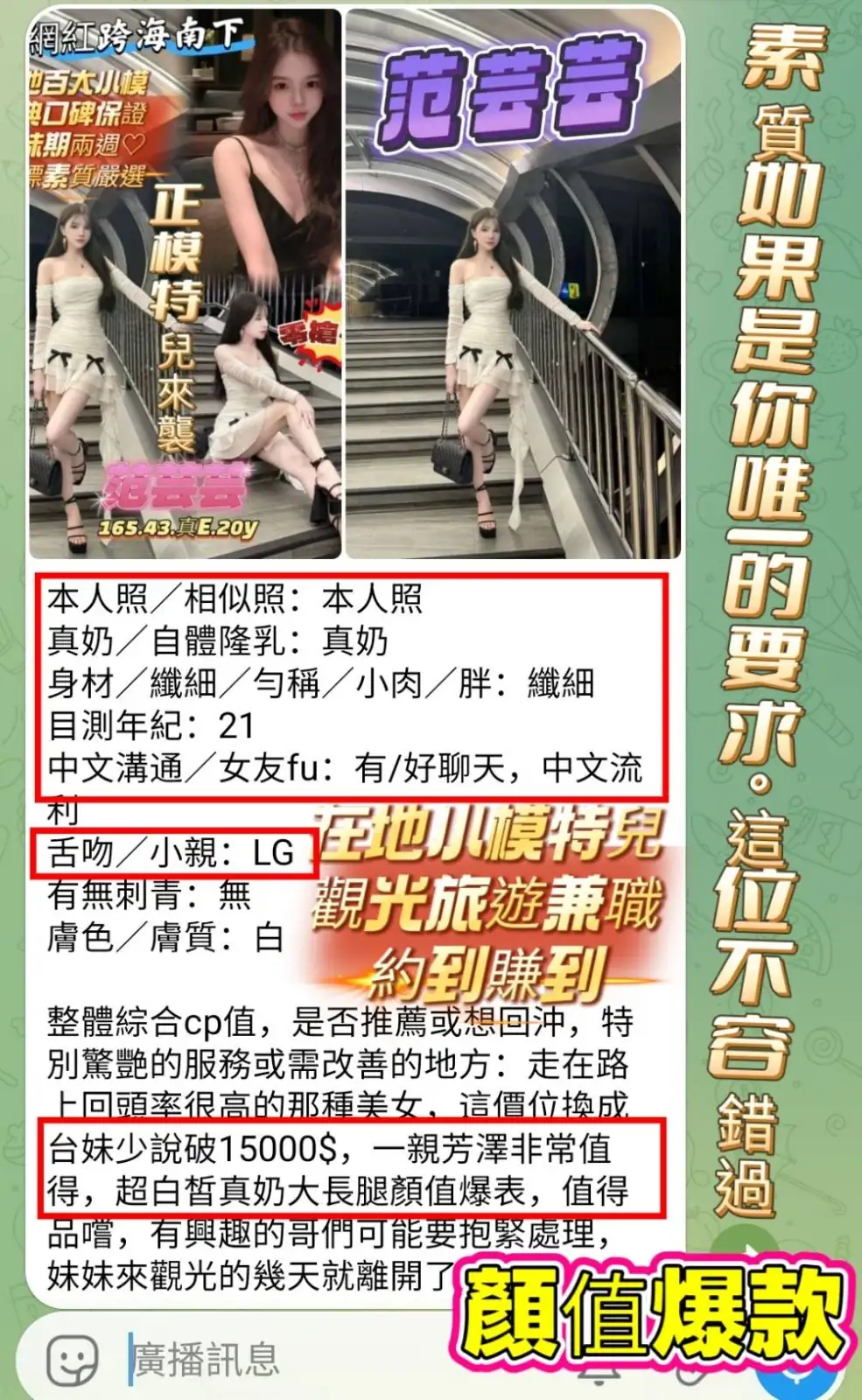 答:不可以哦,因為妹妹都是兼職的,在我們這般約她我們能保證在第一時間保護雙方的安全。如果加聯絡方式自己約,出現任何經濟糾紛與我們無關(有真實案例),請重視!!!