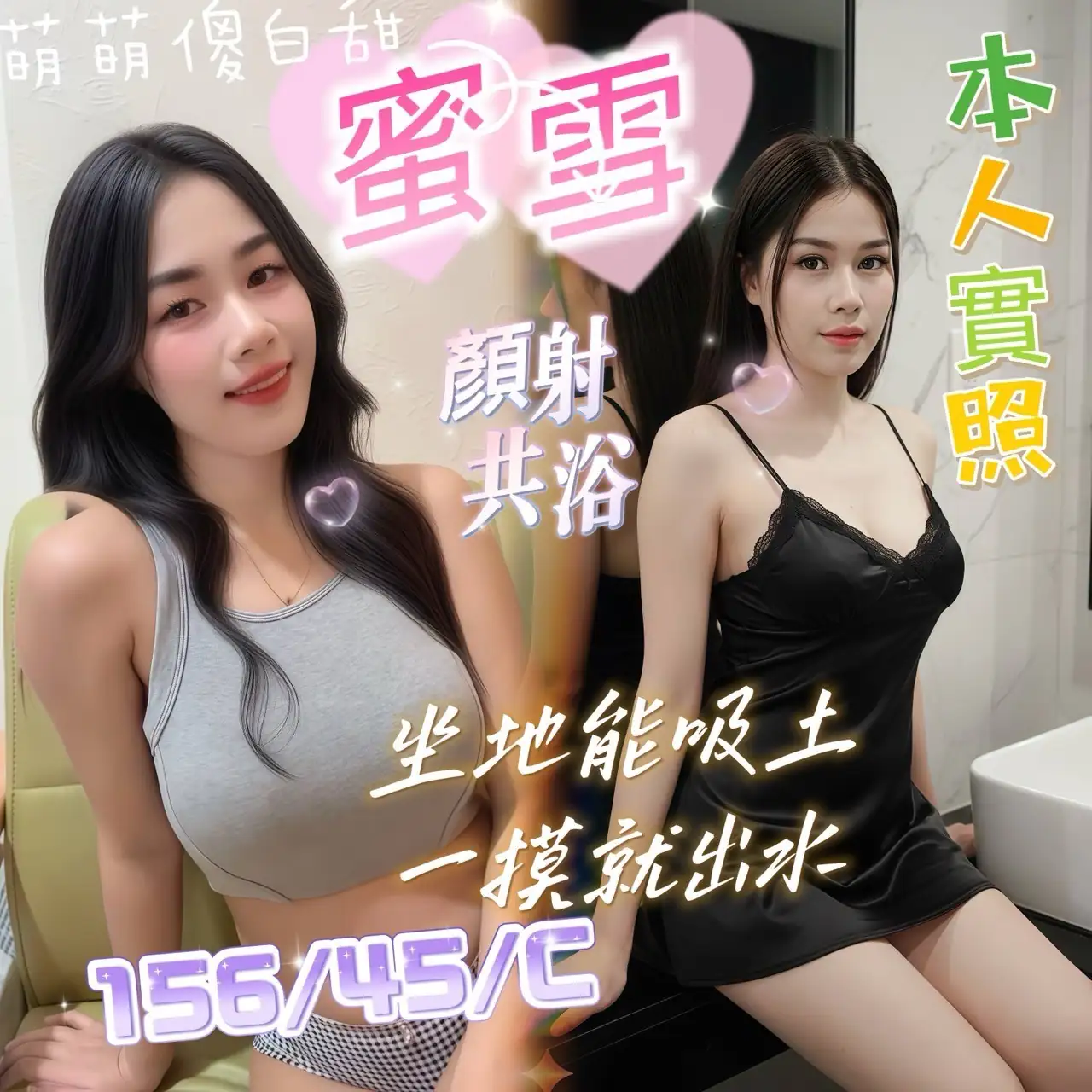 可配合 : 奶砲,按摩,共浴,LG(舌吻)依氣氛衛生而定,可親嘴,無套吹,品鮑,奶推,屁推,顏射,快餐,2S