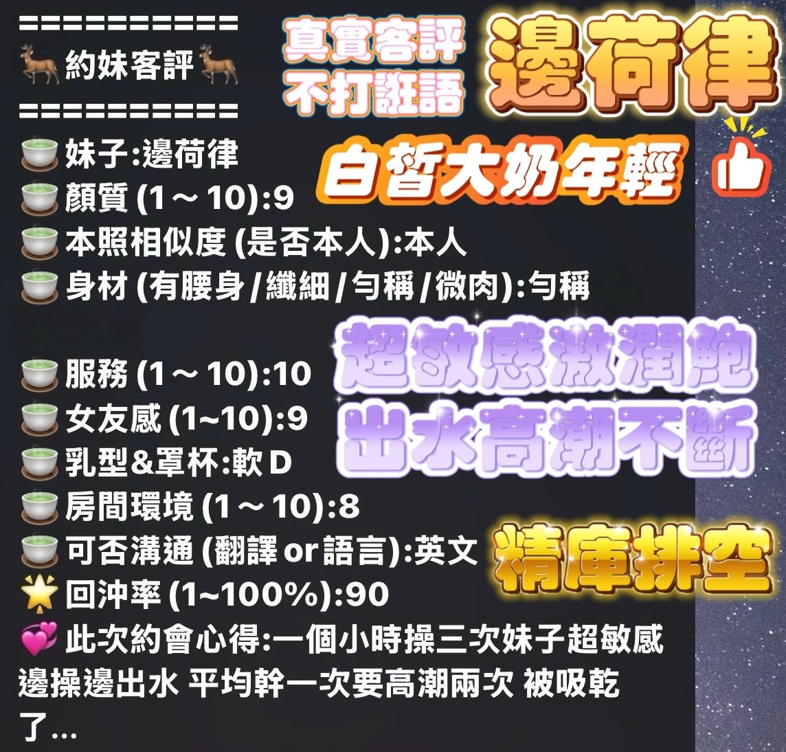 4️⃣見面後確認妹妹滿意後 將現金交給妹妹,即可開始享受服務。