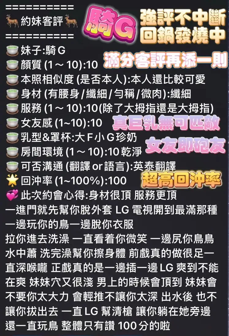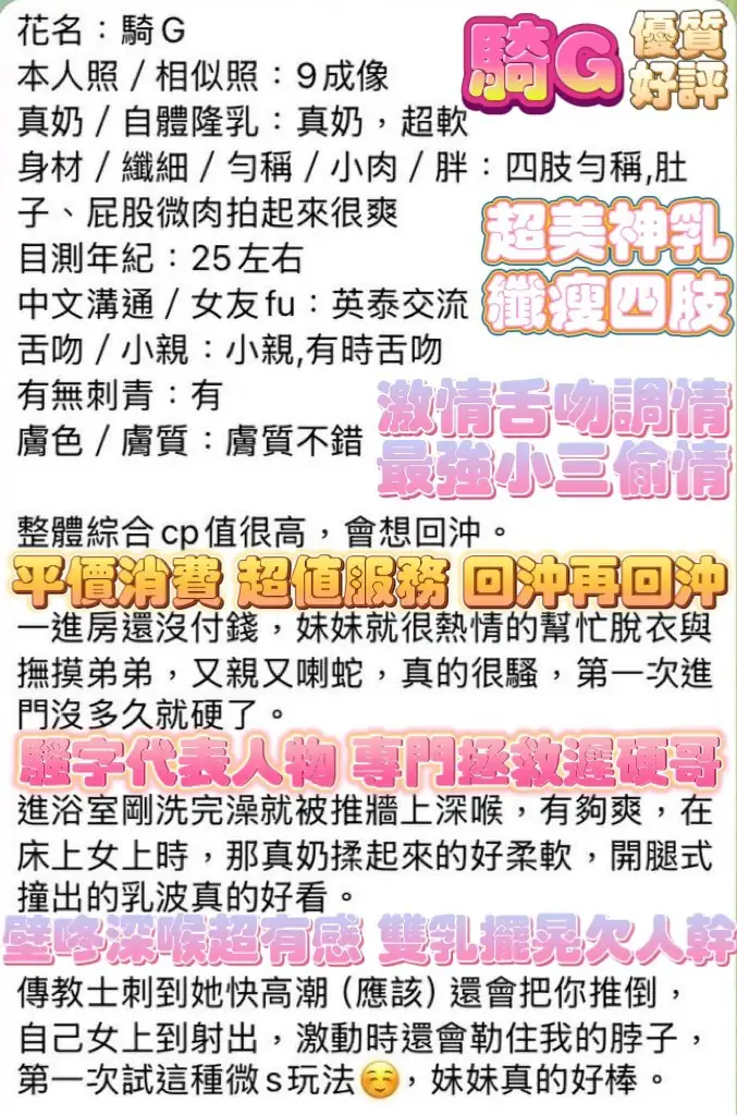4️⃣見面後確認妹妹滿意後 將現金交給妹妹,即可開始享受服務。
